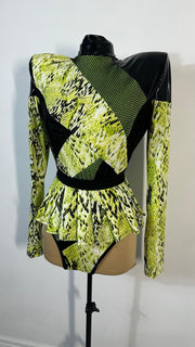 neon animal print, black pvc and mesh leotard with pleated skirt UK 10-20   altered to your measurements 2-6 week...