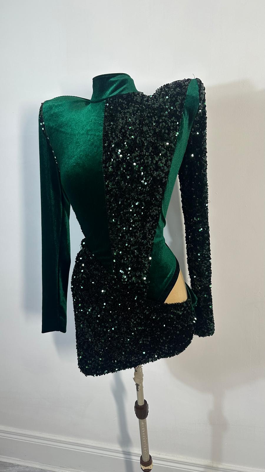green velvet and sequin panel leotard and wrap skirt UK 10-18