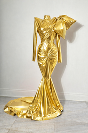 The Empress  Metallic foil stretch lamé leotard with a large bow detail and detachable trumpet gown skirt.  shade my slightly vary ...